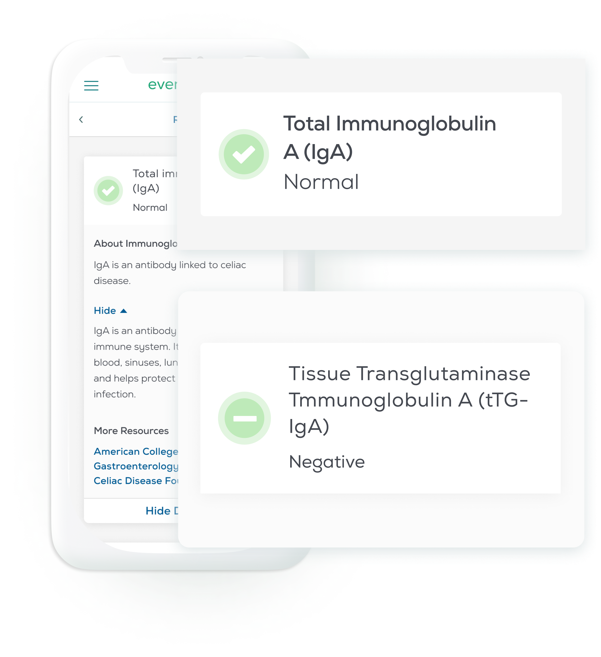 Our at-home lab test measures 2 key antibodies that are associated with celiac disease. If your results show that you may have an increased risk of celiac disease, a representative from our independent clinician network will reach out to you about next steps.